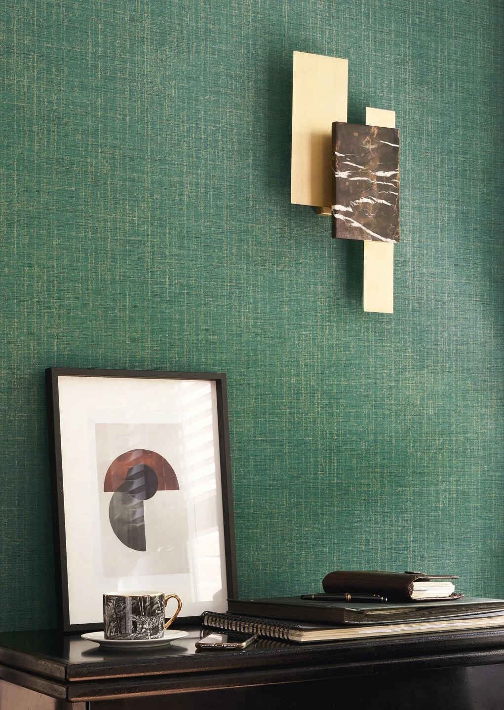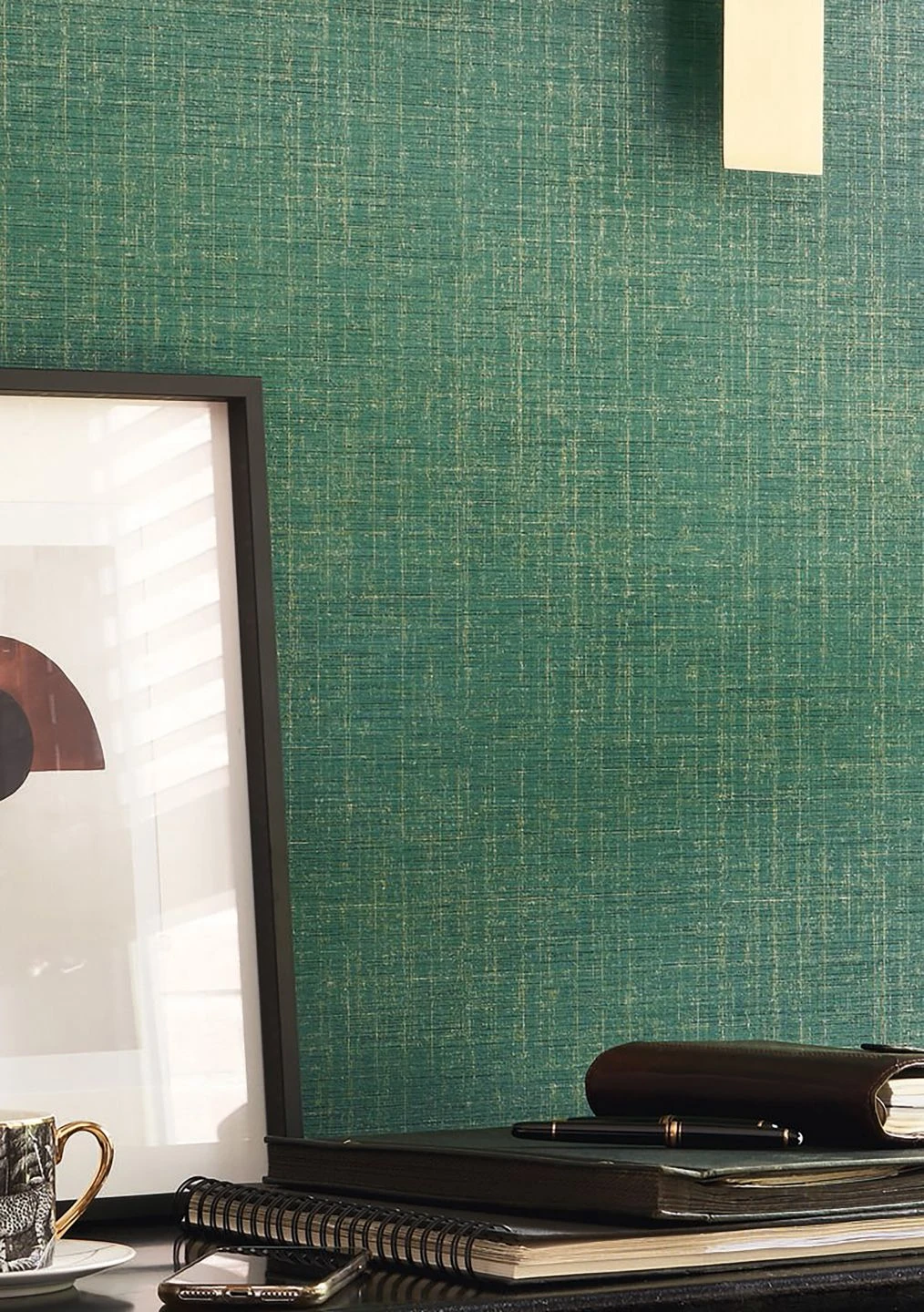 Diese Vliestapete strahlt die warme Geborgenheit einer Textiltapete aus, in deren Material neben dem grünen Grundton auch Fäden in Gold und Schwarz eingearbeitet sind. Tatsächlich besteht die Oberfläche aus Vinyl, dessen gewebeartig gearbeitete Oberflächenstruktur für die textilähnliche Anmutung sorgt. Dadurch ist „Asana“ scheuerbeständig, so dass Sie mit ihr selbst Ihr Badezimmer zu einem besonderen Ort machen können.