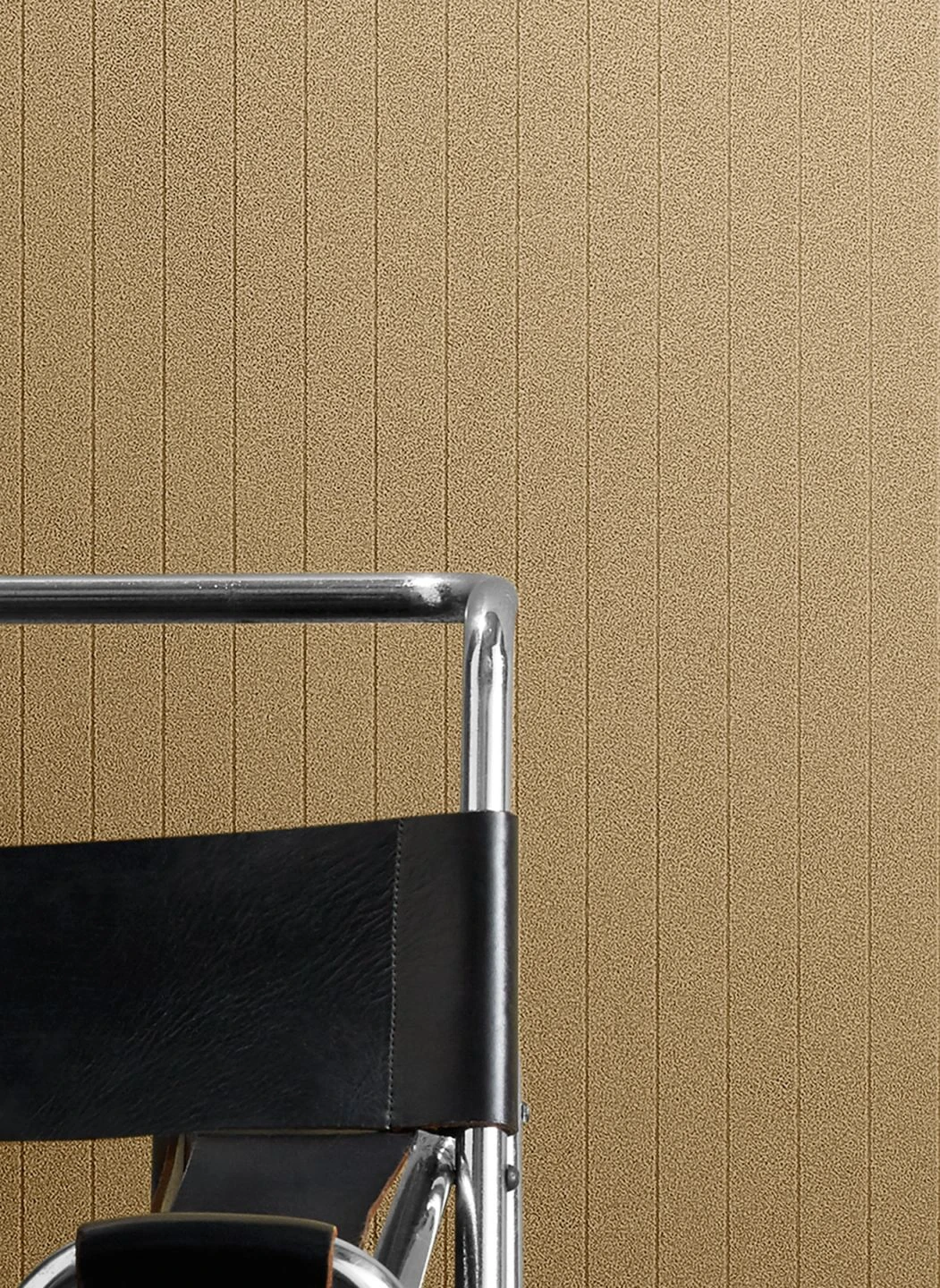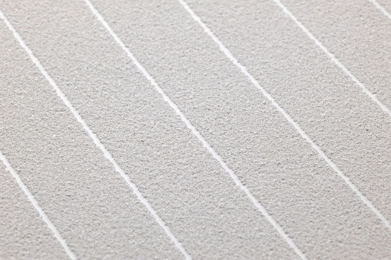 Mit dieser Vliestapete erwacht eine originale Bauhaus-Tapete aus den 20er Jahren zu neuem Leben. Das in die Tapete geprägte Muster entsteht dadurch, dass breite, angeraute Streifen mit schmalen, fugenähnlichen Linien abwechseln. Die schlichten, klaren Formen des modernen Klassikers strukturieren die Wand. Das Grauweiß des Tapetenmaterials lässt sich mit einer Wandfarbe Ihrer Wahl – inspiriert von der Ästhetik des Bauhauses oder ganz unabhängig davon – leicht überstreichen.