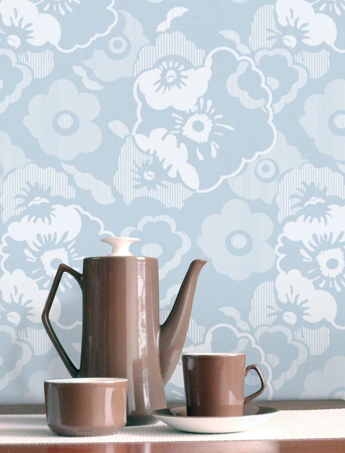 Unbeschwertheit, die ein Tag am See verspricht und eine frische Prise Nostalgie schwingen in der floralen Mustertapete mit, die zu blauen Stunden einlädt. Eine Tasse feiner Tee, ein Stück Kuchen, das gute Buch oder die LP mit den Lieblingssongs, alleine oder mit lieben Menschen. Catia in Blauweiss und Hellblau eröffnet durch ihren sinnlichen Charme alle Zeit der Welt.