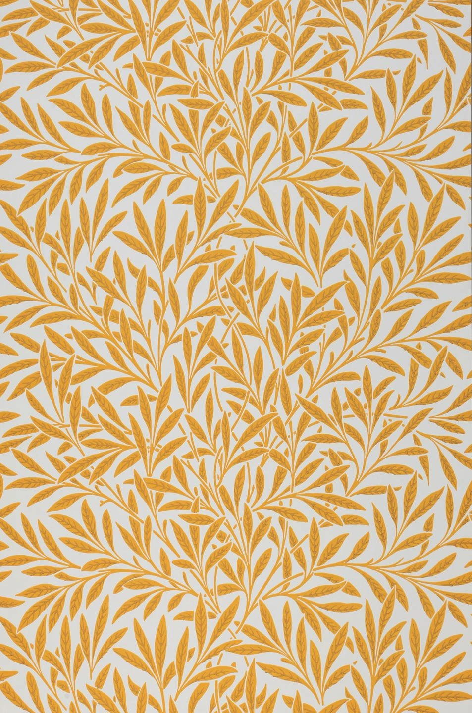 In sonnigem Goldgelb leuchten die feingliedrigen Blätterranken auf dieser im traditionsreichen Leimdruckverfahren hergestellten Papiertapete. Auf dem cremeweißen Hintergrund wirken sie fast schwerelos. Zu antiken dunklen Möbeln im englischen Stil bildet die Tapete einen warmen, strahlenden Hintergrund. Doch auch Einrichtungselemente in Weiß oder in goldener Farbe harmonieren prächtig mit dem kräftig leuchtenden Gelb.
