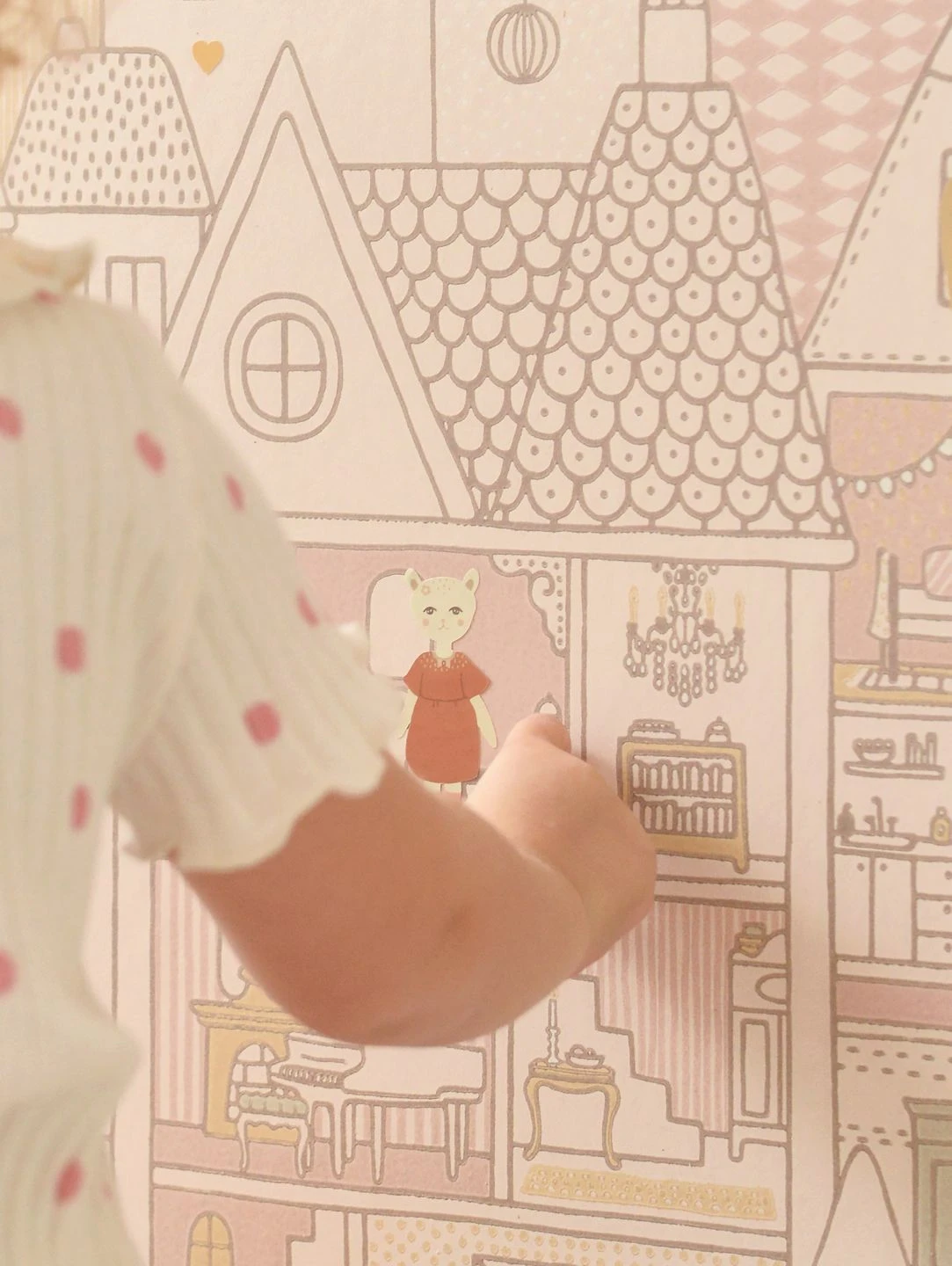 Diese Kinderzimmer-Tapete von Majvillan ist nie ganz fertig! Denn mit den passenden Aufklebern ziehen Bewohnerinnen und Bewohner in die wie Puppenhäuser offenen Häuser der abgebildeten Stadt ein. Ihr Kind gestaltet die Tapete aktiv mit und wird dabei kreativ und phantasievoll zum Spielen und Geschichtenerzählen ermuntert. Die Aufkleber sind mehrfach verwendbar und hinterlassen auf der Tapete keine Rückstände.