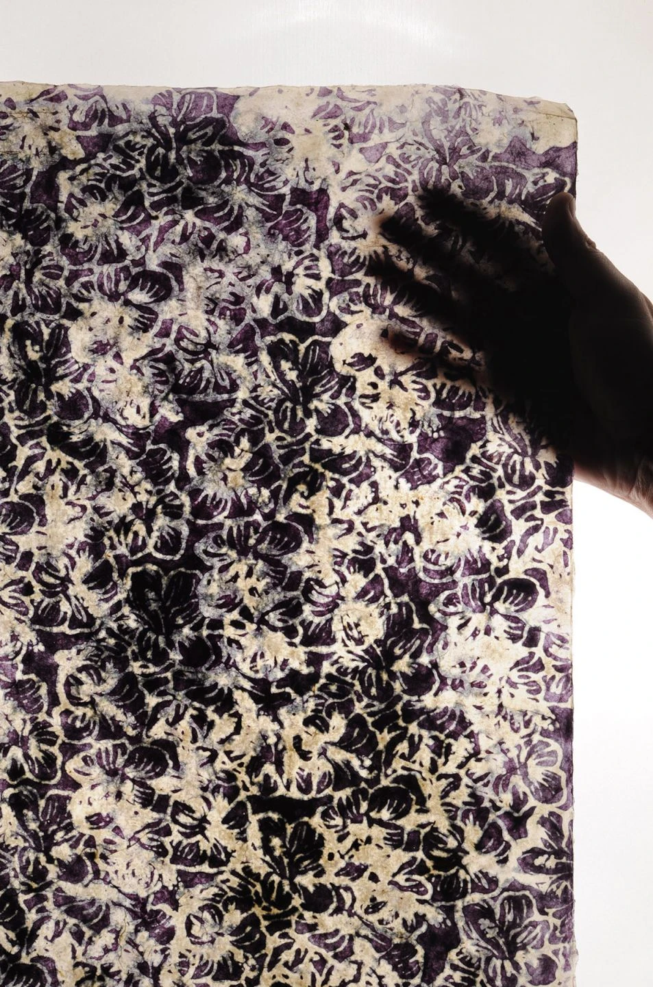Ein Meer von violetten Blüten auf beigem Grund ziert die Bögen der Papiertapete von Le Monde Sauvage. Die kräftige Musterfarbe hebt sich angenehm vom beigefarbenen Untergrund ab. Ethno-Look und Shabby Chic finden auf der handgebatikten Tapete zu einer perfekten Synthese und ermöglichen Ihnen eine Vielzahl attraktiver, individueller Kombinationen in Ihrem ganz persönlichen Stil.