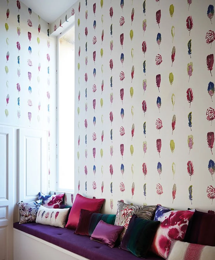 - MusterfarbeBordeauxviolett, Farngrün, Graubeige, Saphirblau