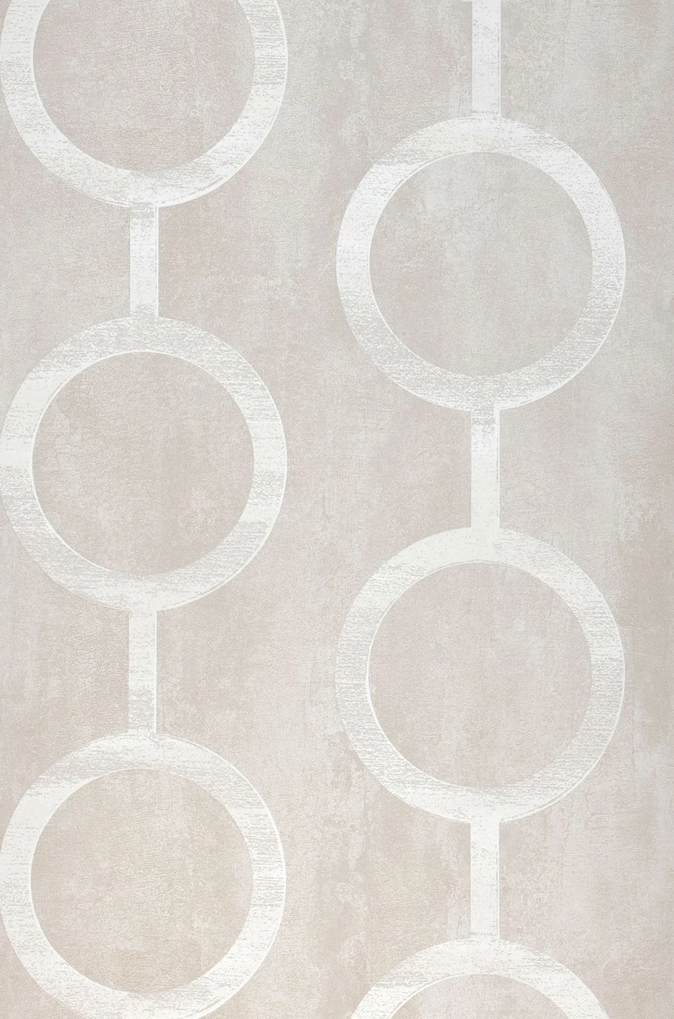 Verschiedene Weiß- und Hellgrautöne suggerieren durch die besondere Drucktechnik eine schimmernde bewegte Struktur des großformatigen Kreismusters. Die hochwertige Vliestapete eignet sich für den Retro-Look ebenso wie für moderne plakative Gestaltungen. Das Spiel mit Licht und Schatten macht sie auch für Chill-Out-Räume hoch interessant.