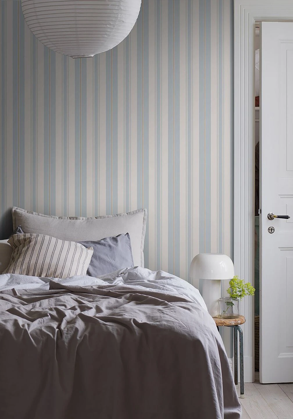 Dieses Streifenmuster wirkt nicht streng oder einengend, sondern macht Ihre Wände durchlässig und lässt sie atmen. Skandinavisch kühl, Ordnung stiftend und gleichzeitig einladend und gemütlich, schmück Vliestapete Inger mit ihren zarten Grau- und Blautönen auf cremefarbenem Grund ein lichtdurchflutetes Wohnzimmer ebenso wie eine heimelige Küche oder ein Ruhe spendendes Schlafzimmer. Aufgepeppt wird das leichte Streifendesign durch feine Linien in Perlgold.