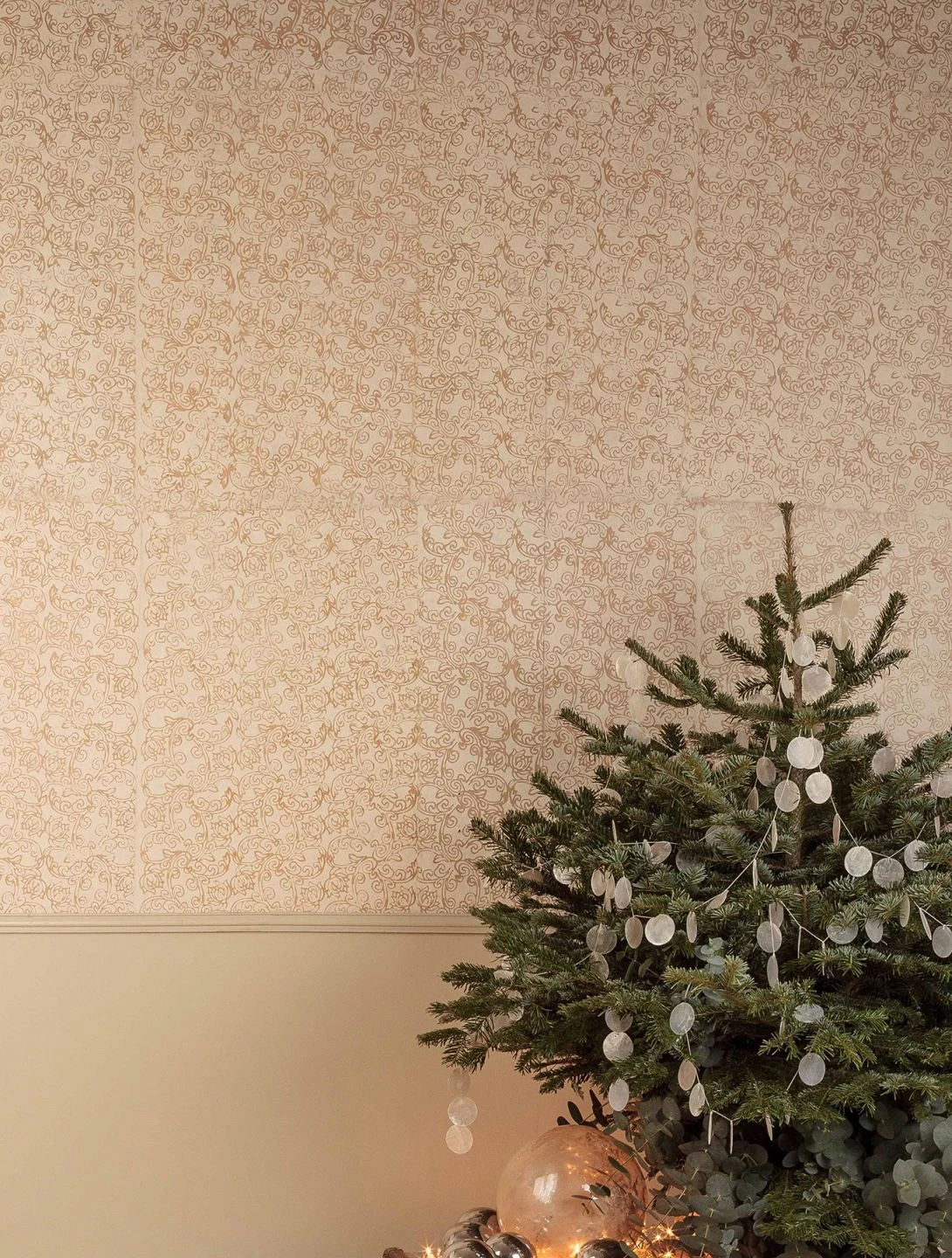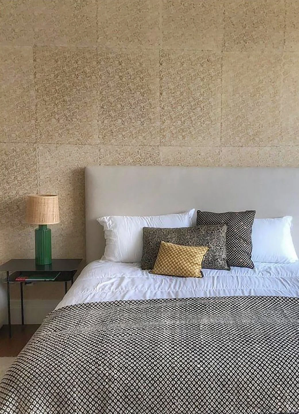 Abstrakte Blüten und Blattranken bilden das Muster im Ethno-Stil, das sich über die gewachste Papiertapete des französischen Herstellers Le Monde Sauvage zieht. Cremeweiß und Beige sind die aufeinander abgestimmten Farben, die sowohl mit hellen als auch mit dunklen Möbeln ausgezeichnet harmonieren. Jedes Blatt der ungewöhnlichen Tapete ist handgebatikt und ein echtes Unikat.