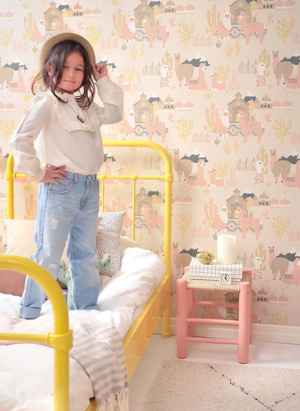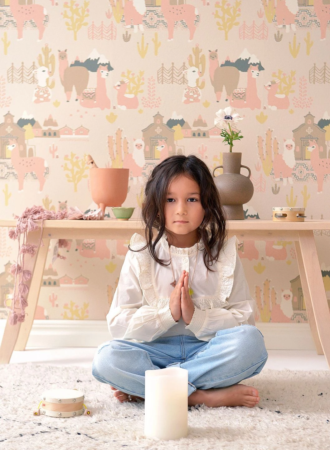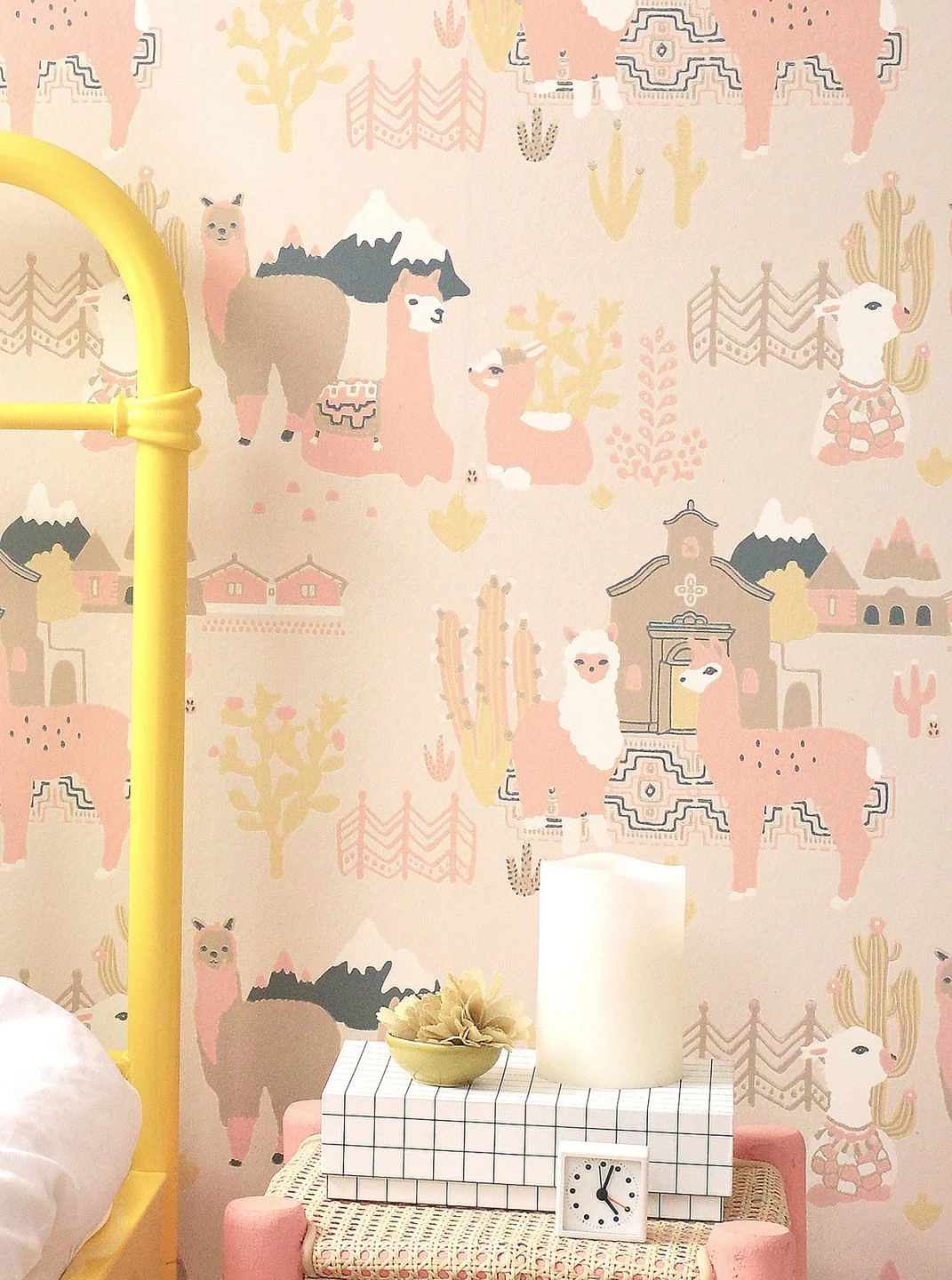 Freundliche, kuschelweiche Lamas in zarten Pastellrosa- und Beigetönen stehen hier im Mittelpunkt. Im Leimdruckverfahren hat der schwedische Hersteller Majvillan die Vliestapete mit Szenen aus der Heimat der südamerikanischen Nutztiere bebildert. So nimmt die Kinderzimmertapete den Betrachter mit auf eine spannende Erkundungsreise in die Welt der Lamas zwischen Kakteen und schneebedeckten Bergen.