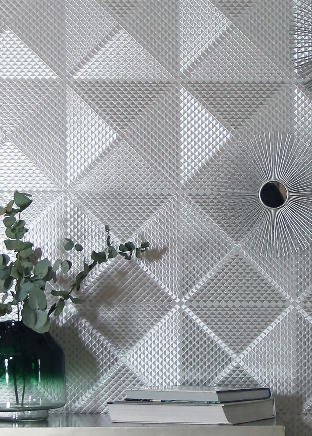 Ein silberner Star am glamourösen Grafikhimmel präsentiert sich mit dieser Designtapete, deren fühlbare Reliefstrukturen vom Licht inszeniert werden. Die starke und scheuerbeständige Vinyltapete mit schimmernder Optik ist ein Highlighter im Flur- und Garderobenbereich, unterstreicht spaciges Clubambiente und kreative Verkaufsräume.