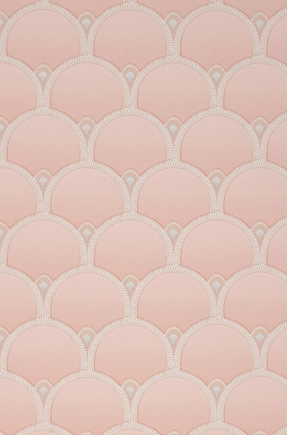 Runde Bögen bilden ein gleichmäßiges Muster, dessen Fächerformen ein Gestaltungselement des Art Deco aufgreifen. Zartes Hellrosa mit einem sanften Farbverlauf, abgesetzt mit Cremeweiß, Hellgrau und Rosenholz, wirkt jugendlich und freundlich. Moxie passt zu weißen oder auch rosafarbenen Einrichtungselementen, gibt aber auch einen reizvollen Kontrast zu dunklem Holz. Die glatte Vinyloberfläche ist hoch waschbeständig und damit auch fürs Badezimmer perfekt geeignet.