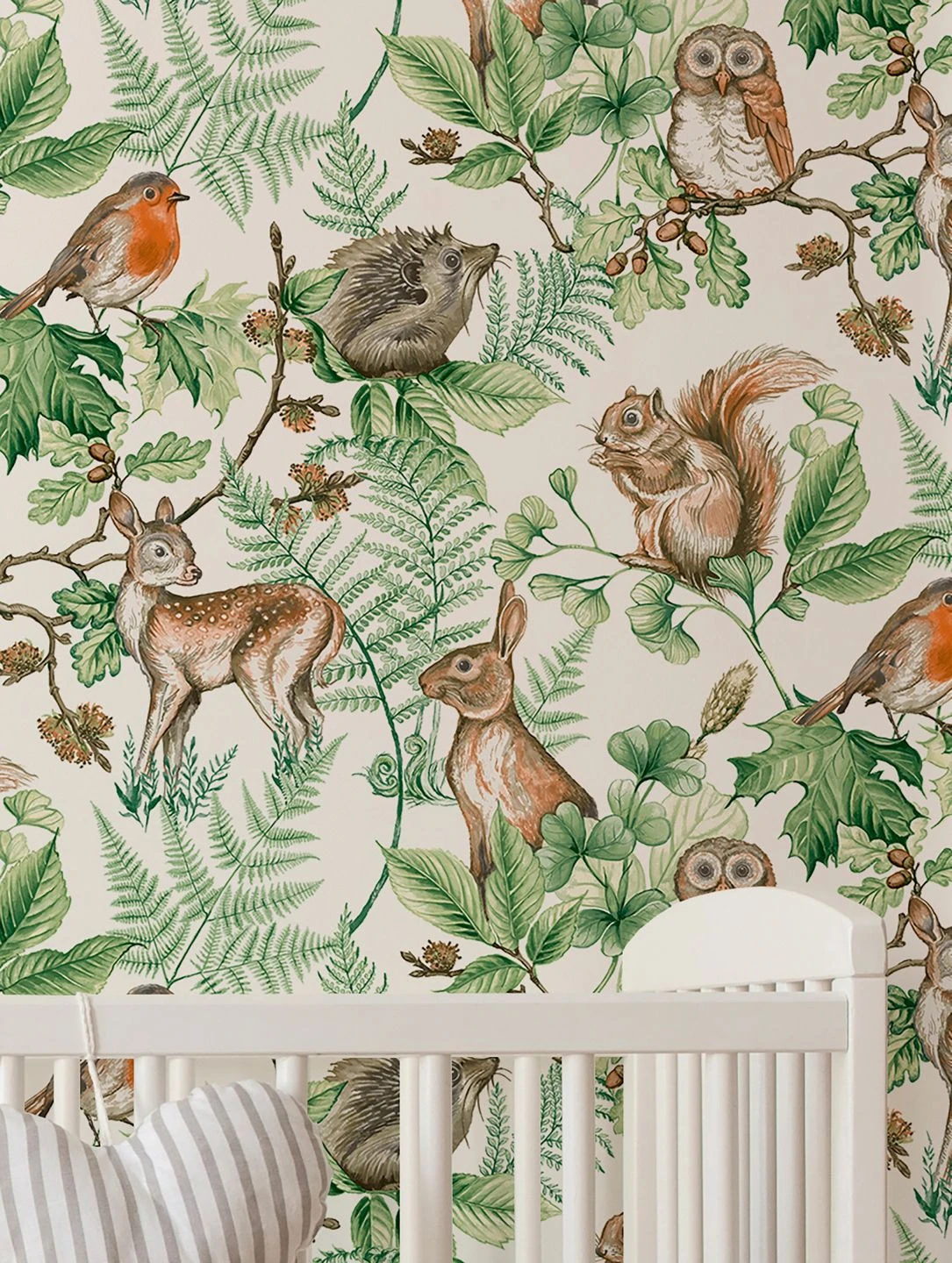 Igel und Eichhörnchen, Rehkitze und Hasen, Rotkehlchen und Waldkäuze – voller Details und Naturtreue sind die wunderschön gezeichneten Abbildungen der heimischen Tierwelt auf der Vliestapete „Nakuru“. Verschiedene Zweige mit Blättern und Früchten ergänzen die Zusammenstellung. Auf dem weißen Grund der Tapete kommen die zarten Farben ausdrucksvoll zur Geltung. Gerade für ein Kinderzimmer schaffen Sie eine zauberhafte Kulisse, in der es viel zu entdecken gibt.