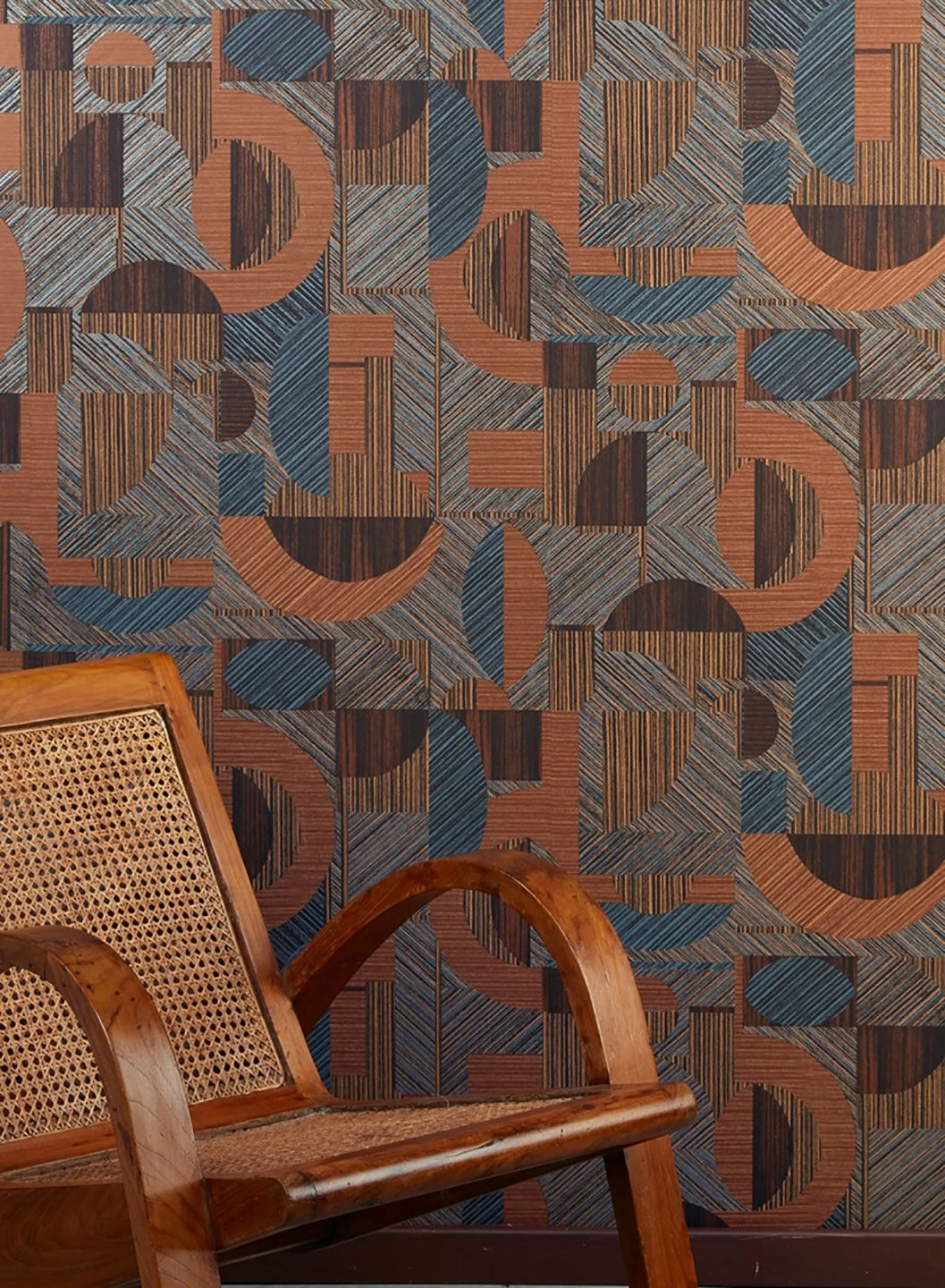 Ein außergewöhnlicher, lebendiger Wandschmuck ist die exklusive Vliestapete „Paseo“. Warmes Beigebraun und schimmerndes Braun bilden einen Kontrast mit kühlem Perlblau und Schwarz. Die Schraffur in den verschiedenen Farbtönen lässt geometrische Elemente entstehen, die durch den leichten Schimmer der braunen Highlights reizvolle Lichtreflexionen zum Strahlen bringen. Warme Holztöne Ihrer Möbel harmonieren wunderschön mit den Farben der Tapete.