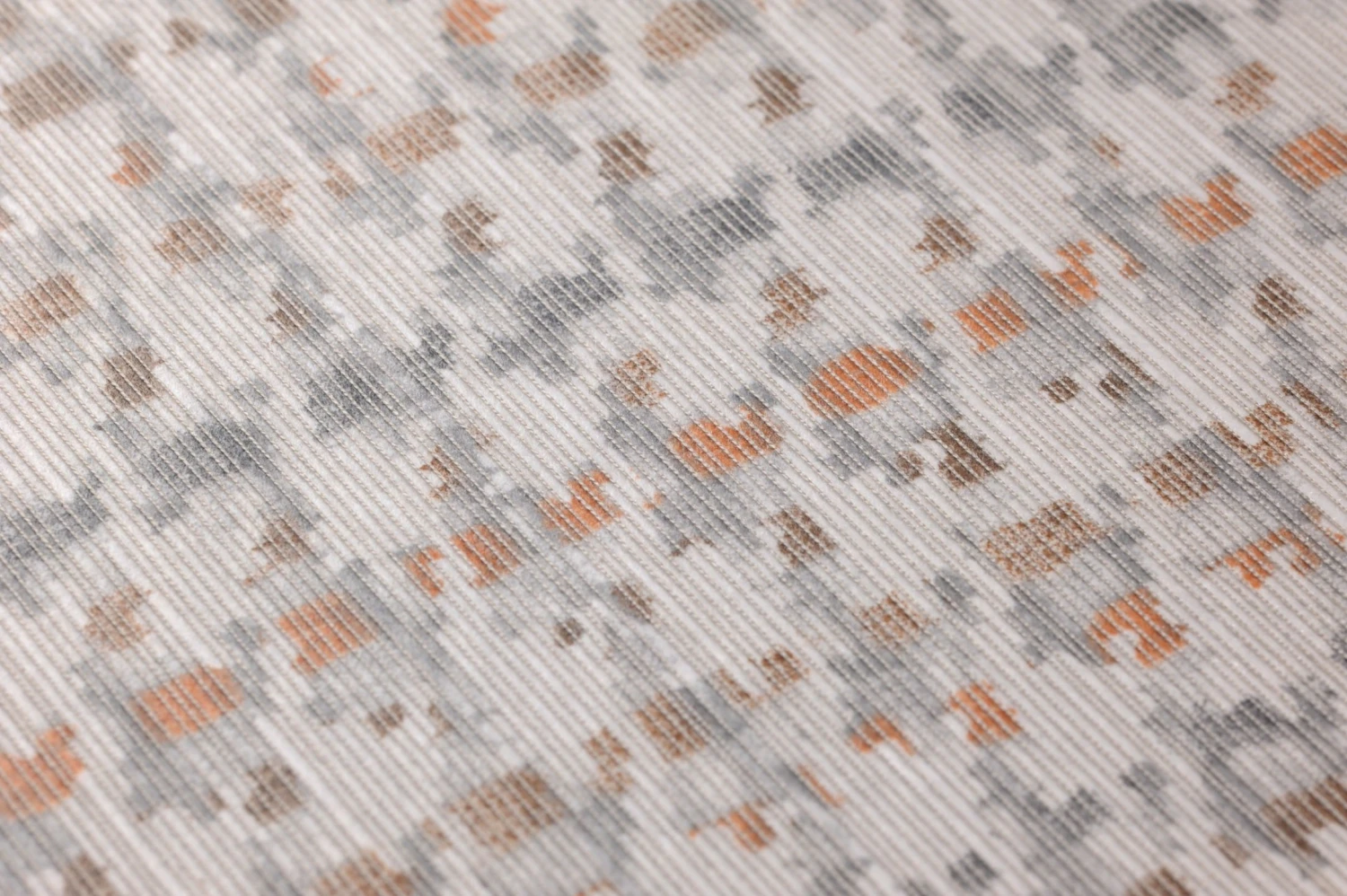 Das Pepitamuster, das den Charakter der Tapete Pepita Style ausmacht, ist ein echter Klassiker. Elegant und gleichzeitig lebhaft illustriert es hier die Oberfläche der Textiltapete mit warmen Braun- und Orangetönen sowie klassischem Grau. Der Clou sind die edlen, glatten Kettfäden, die auf die Tapete aufgebracht wurden, um fühlbare Struktur und das unverfälschte Flair eines hochwertigen gewebten Stoffs beizusteuern.