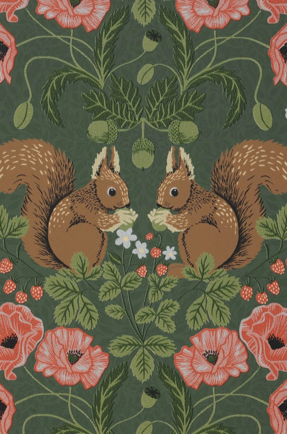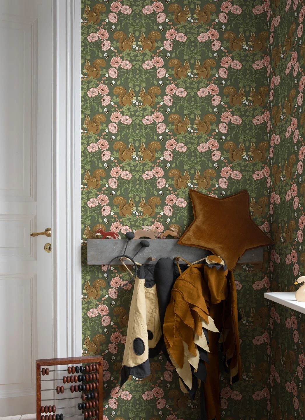 Fast naturgetreu anmutende Eichhörnchen, umgeben von üppigen Blüten, Blättern und reifen Früchten, beleben Ihren Raum mit ihrem Charme. Die Vliestapete Pihla vereint raffiniert Tradition und Moderne. Der kieferngrüne Grund, die hellgrünen stilisierten Blätter und Blüten in Hellrosa und Korallenrot erinnern an englische Tapeten im Stil von William Morris. Doch durch die Eichhörnchen und Bienen strahlt Pihla zeitlose Lebendigkeit aus. Von Vintage über Shabby Chic bis zum skandinavischen Stil sind den Einsatzmöglichkeiten keine Grenzen gesetzt.