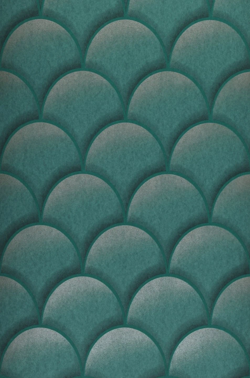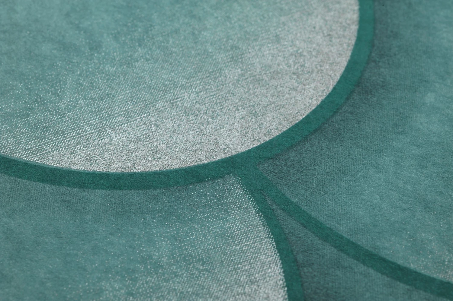 Eine zarte, silbrig schimmernde Schattierung betont die überlappend angeordneten Ornamente aus hellgrünen Bögen und Flächen in strahlendem Opalgrün. So kommt das Design der Tapete, das den Stil des Art Deco nachempfindet, besonders schön zur Geltung. Opalgrün und Silber wirken zusammen elegant und gleichzeitig frisch. Das geometrische Muster kommt modern und zeitlos zugleich daher und macht Ihren Raum unverwechselbar.