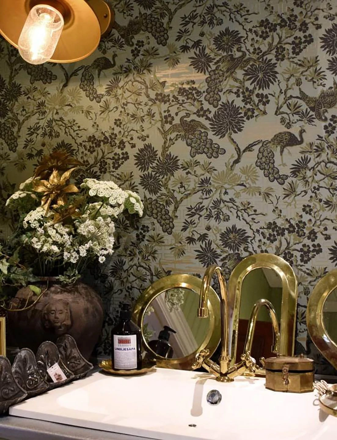 Harmonisierende Farben wie Mintgrau, Grauoliv, Mattgold und Schilfgrün verströmen das Flair eines asiatischen Sonnenuntergangs inmitten einer blühenden Pracht. Ob Sie Räume im Asia-Look gestalten oder ein Stück vom romantischen Glück genießen wollen – Mit der floralen Mustertapete gelingt Ihnen alles.